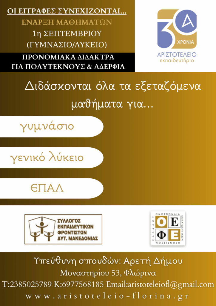 Έναρξη μαθημάτων χειμερινής περιόδου 2025-2026