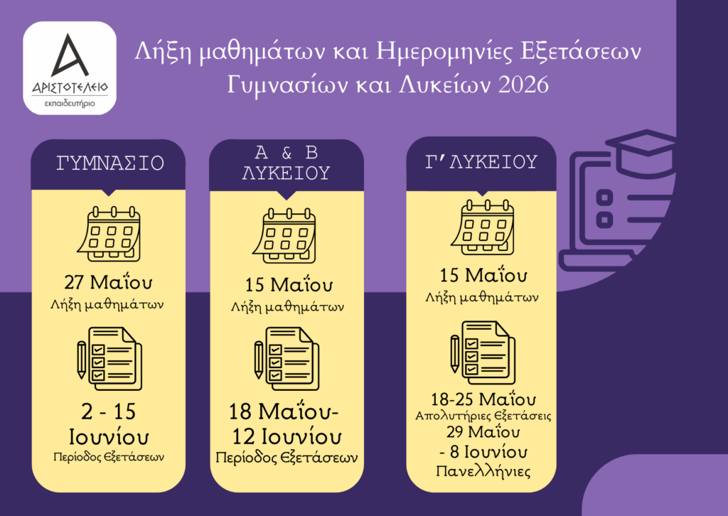 Λήξη μαθημάτων και Ημερομηνίες Εξετάσεων Γυμνασίου και Λυκείου 2026