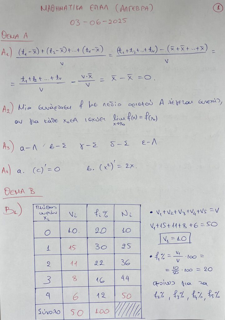 Πανελλαδικές 2025: Ενδεικτικές Απαντήσεις Μαθηματικών ΕΠΑΛ